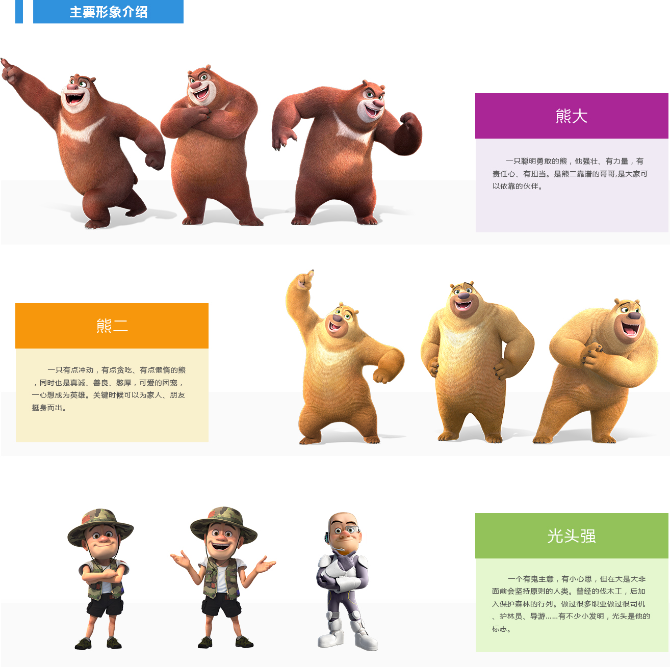 作品通過(guò)講述熊大、熊二、光頭強(qiáng)生活中的趣事,向廣大觀眾傳遞“自然、環(huán)保、健康、快樂(lè)”的品牌理念。寓教于樂(lè)的內(nèi)容,精良細(xì)膩的制作,幽默的語(yǔ)言風(fēng)格,想象力十足的故事設(shè)定,積極正面的價(jià)值主題,讓“熊出沒(méi)”成為極具影響力的國(guó)民動(dòng)漫IP,熊出沒(méi)的經(jīng)典角色、臺(tái)詞及動(dòng)漫歌曲風(fēng)靡全球,深受全世界觀眾粉絲喜愛(ài)。