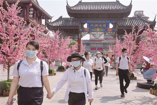 4月10日,長沙方特東方神畫園區,寧鄉市疾病預防控制中心的醫務工作者在免費游玩。當天,該園正式復工開園,曾經在長沙城區抗疫一線奮戰的30余名“白衣天使”受邀成為首批入園游客。湖南日報全媒體記者 徐行 通訊員 周冰鑫 攝影報道