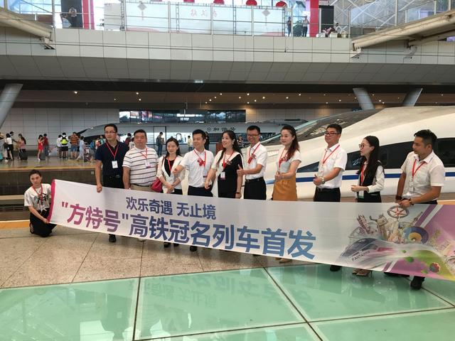 當天,由華強方特集團冠名的高鐵G692次“方特號”,在武漢站迎來首發(fā)。在這列高鐵上,車廂內(nèi)的座椅枕巾、走道宣傳海報、顯示屏上都有方特旅游區(qū)的相關(guān)信息,可供來往旅客了解。