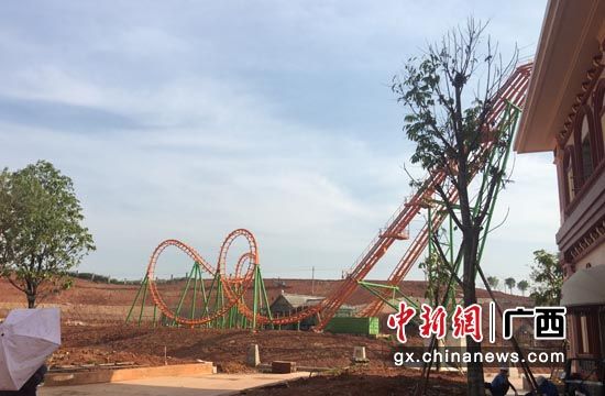 在園區里,每個國家的場館外都搭建著密密麻麻的腳手架,施工人員正在緊張施工。除東盟十國的場館外,這里吸引人眼球的還有從美國進口的木質過山車。記者看到,工人們正在為木質過山車的站臺拼裝零部件。工作人員介紹,木質過山車設備5月開始安裝,現正進行站臺部分的施工。過山車主體為全木質結構,落差32米,最高90公里時速,是中國西南片區較大型的木質過山車。