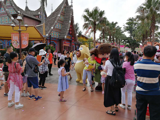 游客在方特東盟神畫園區(qū)入口拍照留念(人民網(wǎng) 李易攝)