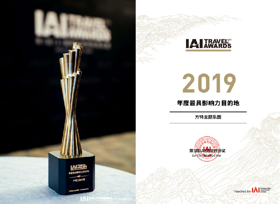 IAI國際旅游獎旨在嘉獎全球旅游營銷界年度創(chuàng)新并具有廣泛影響力的旅游營銷案例,是旅游營銷潮流趨勢的風向標。此次方特主題樂園獲頒IAI國際旅游獎“2019年度最具影響力目的地”,體現(xiàn)出權(quán)威機構(gòu)對方特主題樂園卓越品質(zhì)和優(yōu)異成績的認可。