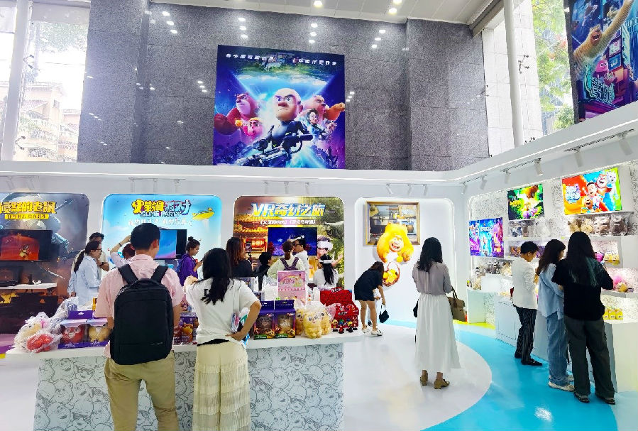 本屆華強方特分會場另一吸睛無數的當屬動漫區域,“熊強”大明星正現身舞臺上演人偶歌舞秀,隨后“熊強”人偶又和觀眾零距離親密互動,現場氣氛節節高高漲。今年還設有“熊出沒”裸眼3D拍攝區,可供觀眾拍照留影,栩栩如生的動畫形象以及逗趣歡樂的造型吸引觀眾競相合影,現場氣氛十分熱烈。還看到許多觀眾互動后戀戀不舍,繼續在現場暢享動漫時空,重溫《熊出沒》《生肖傳奇》等動漫經典,觀賞品味《熊出沒?逆轉時空》《趙琳的探險日記》《熊出沒之小小世界》等多部載譽無數的新作,《熊出沒系列電影MV串燒》、“熊出沒”十周年主題曲《再次與你同行》等多部令人感動的動漫MV也燃爆現場。與此同時,觀眾還可以參與有獎問答、聲優模仿秀等眾多互動活動,贏取各式各樣的“熊出沒”周邊,讓在衍生品展售區購買了玩具、文具、服裝等衍生產品的觀眾甚是羨慕。