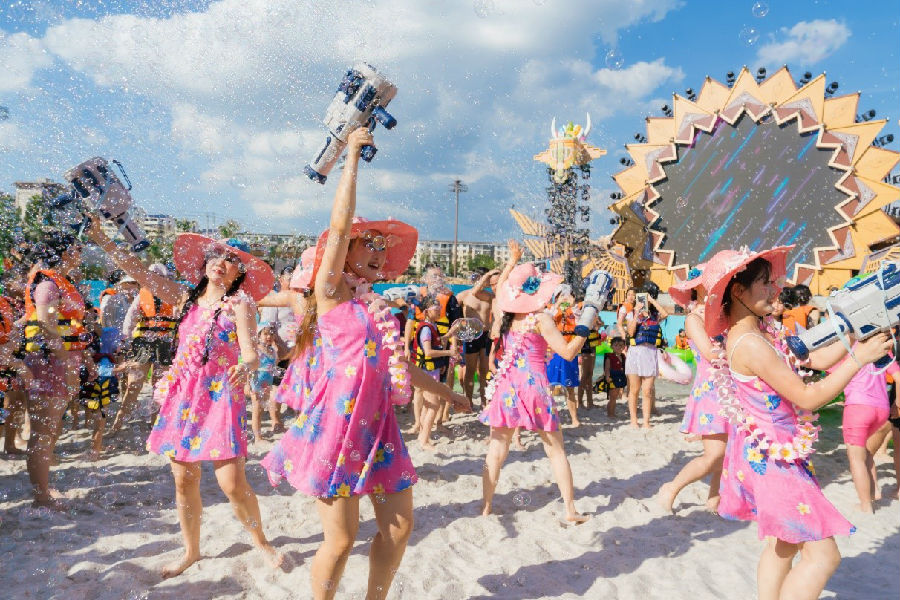 開(kāi)園之際,徐州方特水上樂(lè)園還推出了一系列精彩紛呈的活動(dòng)。游客們不僅能欣賞精彩的主題演藝,還能參與各色互動(dòng)演出,在激蕩的浪花和動(dòng)感的音樂(lè)聲中暢享夏日水狂歡。