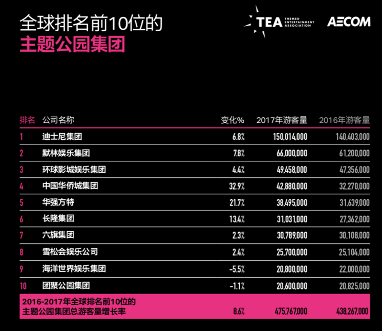 全球排名前十的主題樂(lè)園集團(tuán);來(lái)源:2017年全球主題樂(lè)園調(diào)查報(bào)告,TEA&AECOM