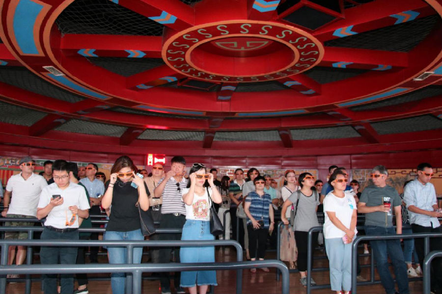 次日,華強(qiáng)方特盛邀參編單位專家全面了解方特主題樂(lè)園的不同產(chǎn)品。與會(huì)專家先后參觀了方特歡樂(lè)世界、方特夢(mèng)幻王國(guó)兩座主題樂(lè)園。專家們饒有興致地體驗(yàn)了《飛越千里江山》、《千古蝶戀》等項(xiàng)目,給予極高的評(píng)價(jià)和贊譽(yù)。大家表示,方特主題樂(lè)園的高科技“飛行觀畫”模式,讓人仿佛真的“翱翔”于千里江山間,如臨其境體會(huì)了傳世國(guó)寶的動(dòng)人魅力。如夢(mèng)如幻的“千古蝶戀”運(yùn)用四面“幻影成像”全息投影舞臺(tái),配合專業(yè)演藝者的現(xiàn)場(chǎng)表演,亦真亦幻地演繹了梁山伯與祝英臺(tái)的曠世之戀,高科技與舞臺(tái)藝術(shù)完美結(jié)合的演出,贏得現(xiàn)場(chǎng)體驗(yàn)的專家們一致好評(píng)。