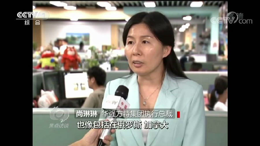 華強方特集團執行總裁尚琳琳在接受《焦點訪談》采訪時介紹說:“華強方特的動畫作品已經出口到全球100多個國家和地區,登陸索尼、探索頻道、Netflix、Nickelodeon等國際主流媒體頻道,電影還在包括俄羅斯、加拿大、秘魯、哥倫比亞等30多個國家和地區的院線持續上映。”